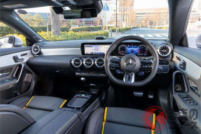 日常的な場面では、低いギアを使いたがるシフト制御の忙しなさが気になることもあります。そう感じるなら、2500rpmで400Nmの最大トルクを発揮し、低回転域から力強さが得られるCLA35を選ぶのもひとつです。それでも、最近では稀なCLA45 Sの過激なエンジン特性に興味を覚える人も少なくないでしょう。