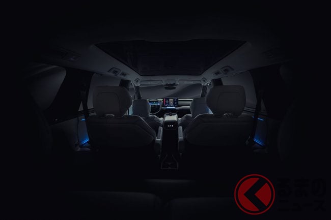2列目後部にもUSB-Cポートと思われる端子が備わっており、ルーフにはエアコン吹き出し口も備わっていることから、3列シートである可能性が高そうです。