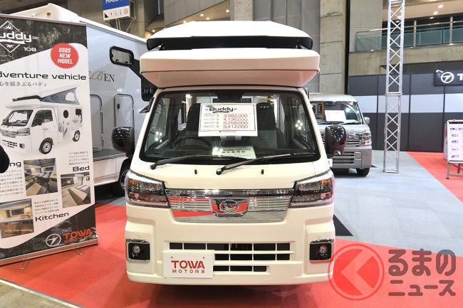 幕張メッセで開催された「ジャパンキャンピングカーショー2026」で、ダイハツ「ハイゼットトラック」をベースにした軽キャンパー「バディ108」が注目を集めました。軽トラなのに4人乗車・就寝できるという、その驚きのパッケージングとはどのようなものなのでしょうか。