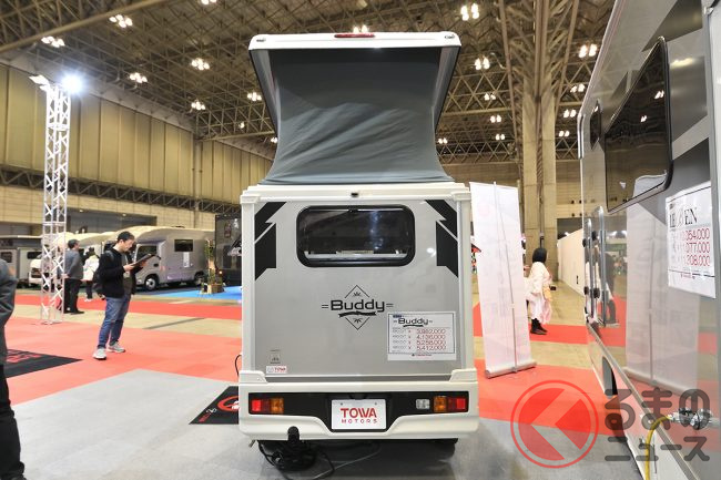 数ある出展車両の中でも、軽キャンパーファンの大きな注目を集めていたのが、TOWA(東和モータース販売)ブースに展示された「バディ(Buddy)108」です。