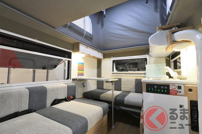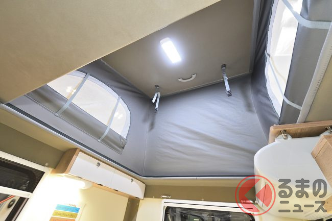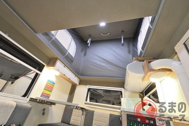 さらに、独自のポップアップルーフを展開すれば、ルーフ上に大人2名、車内に大人2名の計4名が就寝可能です。ルーフを開ければ車内で直立できるほどの開放感が生まれ、軽自動車特有の圧迫感を払拭しています。