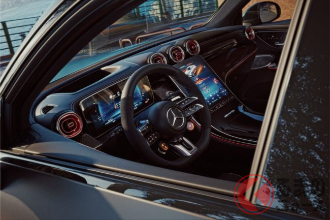インテリアは、大人5人がゆったりと座れるスペースを確保。専用グラフィックを表示するMBUXインフォテインメントシステムや、ホールド性に優れたAMGスポーツシート、ナッパレザーのAMGパフォーマンスステアリングホイールなどを装備し、ドライバーのスポーツマインドを刺激する空間に仕立てられています。
