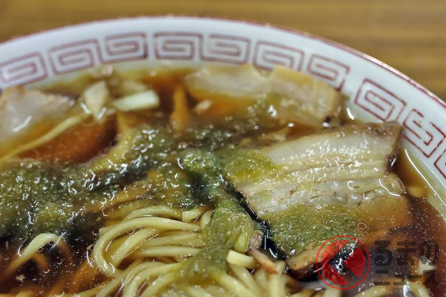 いわゆるご当地ラーメンの“竹岡式ラーメン”なのですが、やさしい味わいのスープやつるっつるの麺、とろとろだけど食べ応えもあるチャーシュー、麺やチャーシューと絡みあう岩のりがたまりません。