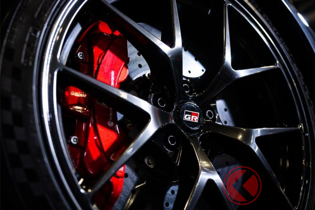 足元のサスペンションは前後ともに新設計のアルミ鍛造アームを使用したローマウントのダブルウィッシュボーン式を採用。タイヤはMICHELIN社のPILOT SPORT CUP2をGR GT専用開発しています。ブレーキはBrembo社製のカーボンディスクを採用し、ブレーキを使った車両挙動の制御もプロドライバーとともに作り込んでいます。