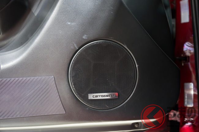 この車両は「古いモデルでも高音質なサウンドを楽しみたい」というコンセプトで音響をカロッツェリアが手掛けており、ヘッドユニットには高音質カーナビの代名詞でもある「サイバーナビ(AVIC-CZ912IV-DC)」をチョイス。スピーカーには、シリーズ最高峰モデルの「TS-V174S」がインストールされています。
