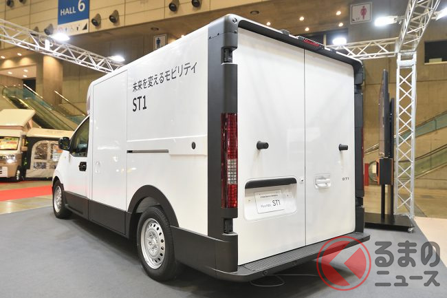 そんな中、輸入車ディーラーの運営や中古車販売・キャンピングカーの製造販売などを行うホワイトハウス(愛知県)は、2026年1月30日から2月2日まで、幕張メッセ(千葉市美浜区)で開催された「ジャパンキャンピングカーショー(JCCS)2026」で、韓国・ヒョンデの商用EV「ST1」を初展示し、来場者の熱い視線を浴びていました。