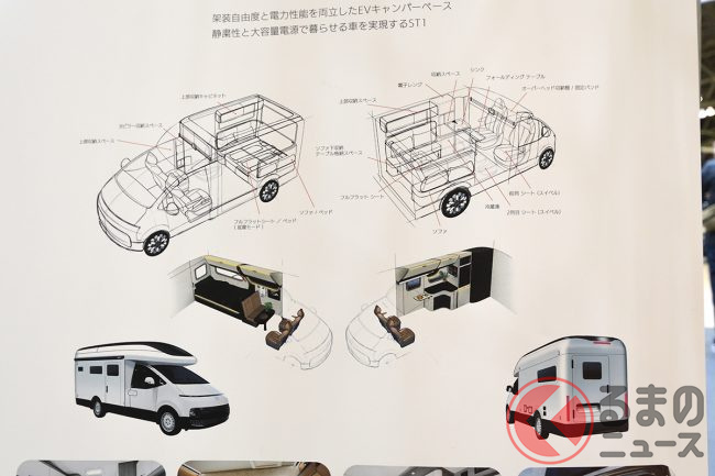ST1の高い展開性は、キャンピングカーのベース車両としても優れたポテンシャルがあり、会場で国内初公開が行われました。