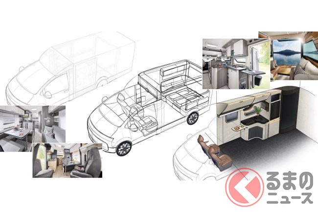 日本市場で販売・流通しているキャンピングカーは、ベース車がトラックや1BOXバンということもあって、エンジンを搭載したモデルが多く、電気のみで走る純EV化はほぼ進んでいない印象です。