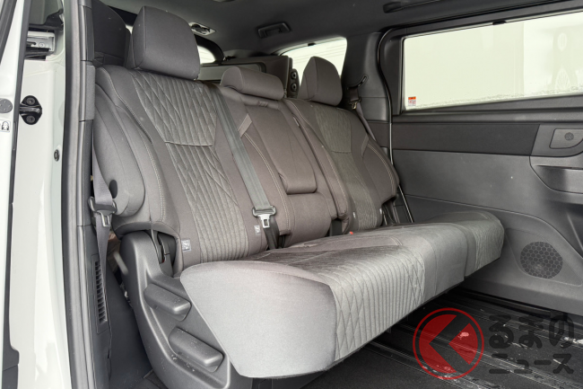 2列目シートがベンチシート形状となるため、チャイルドシートを装着した状態でのケアがしやすく、また3列目へのアクセスもチップアップ機能を使えばスムーズに行える点がメリットとして挙げられます。