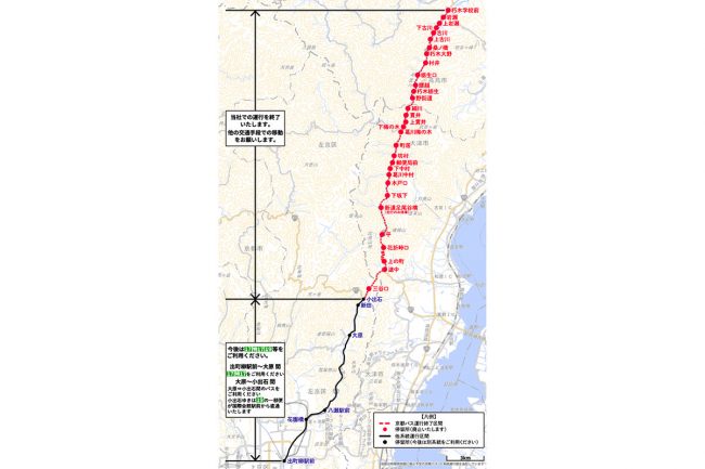 滋賀県境手前、「小出石」バス停までは10系統のほか、19系統もありますが、そのさきの滋賀県区間の31のバス停は同日付けで廃止となります。