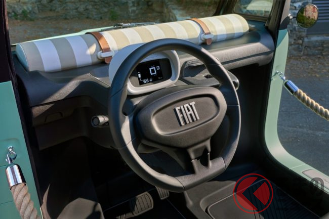 インテリアは、互い違いに配置された2つのシートや広々としたガラスエリアにより、コンパクトながら開放感のある空間を実現しています。今回の新色追加とメーターの改良により、トポリーノは「街を明るく、楽しくする」という使命をさらに強化したといえるでしょう。