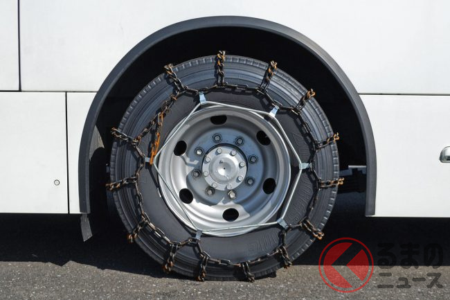まさかの「0秒装着」実現! 新しい「タイヤチェーン」が画期的! 「装着作業“不要”&手間もゼロ」で“面倒くさい”を完全解消! 時計台バスが国内初採用した「オンスポット」の特徴とは