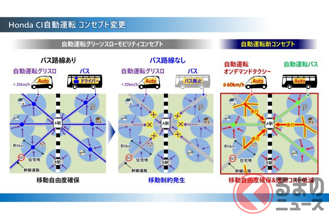 これまでホンダは、ラストワンマイルの課題を解決するべく茨城県常総市などで時速20km未満の低速モビリティ「グリーンスローモビリティ」を用いた実証を行ってきました。