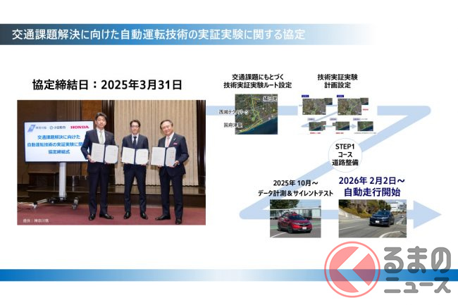 ホンダの研究開発子会社である本田技術研究所、神奈川県、小田原市の3者は2026年2月18日、小田原市における自動運転技術の実証実験について説明会を開催しました。