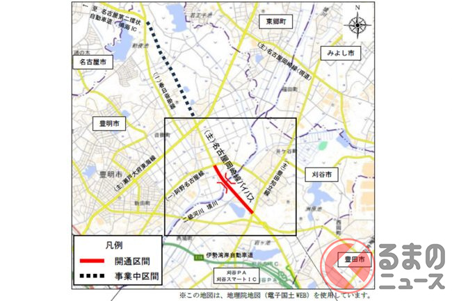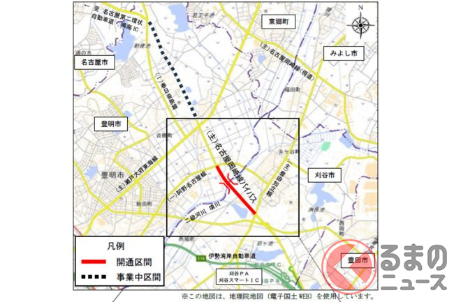 今回開通するのは豊明市と刈谷市をまたぐ約1.2kmの区間です。名古屋市と岡崎市を結ぶ重要路線の整備進展により、高速道路へのアクセス向上や地域間の連携強化、防災機能の福音が期待されています。