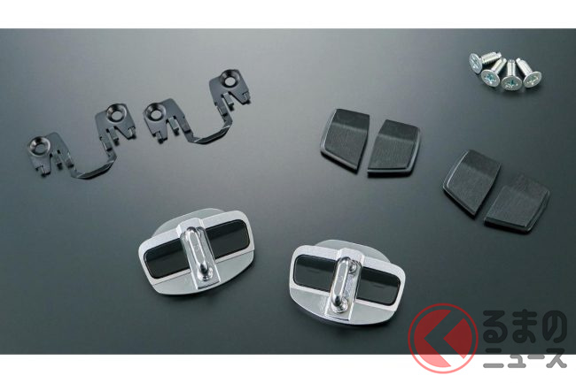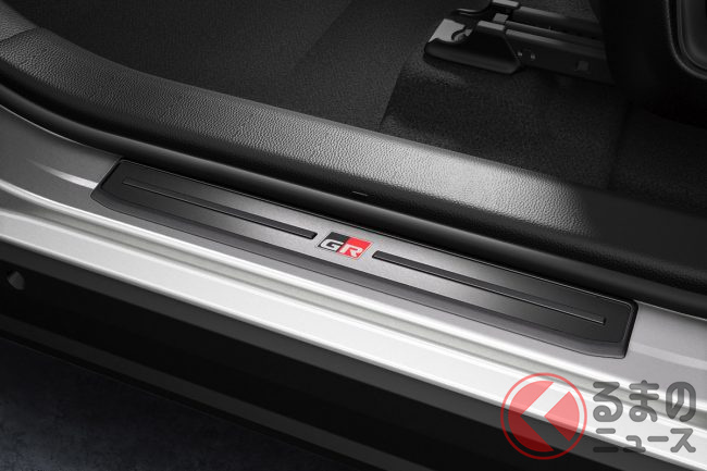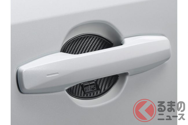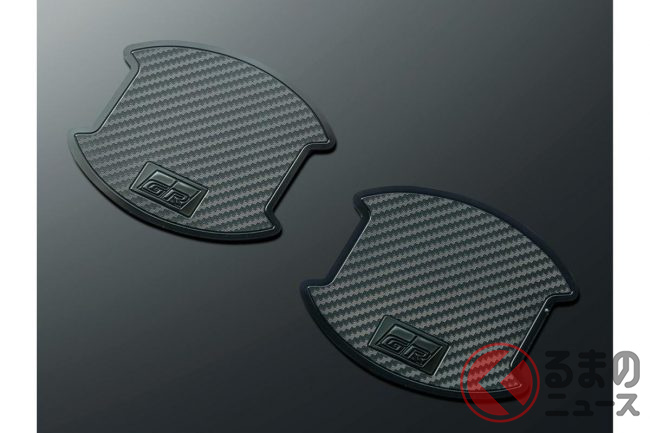 「GRドアハンドルプロテクター(1台分:6600円)」は、ドアの開閉時に爪などで付きやすいひっかき傷を防止するアイテムで、カーボン調のデザインとGRロゴが、ドアハンドル周りにさりげないスポーティさをプラスします。