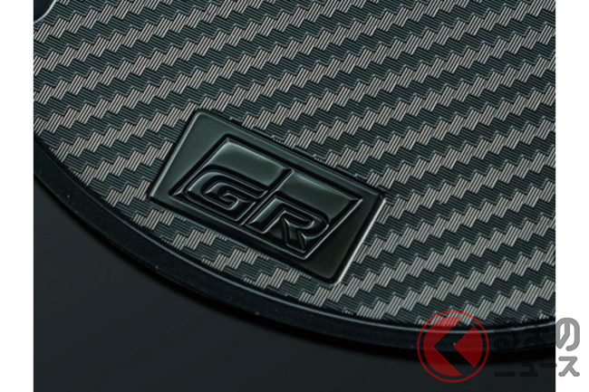 「GRカーボンナンバーフレーム(フロント/リヤ:各1万9800円)」は、軽量かつ高強度なドライカーボンを採用したナンバーフレームで、レーシングカーと同じ素材を使用し、フロント・リヤビューを引き締めるスタイリッシュなアクセントになります。