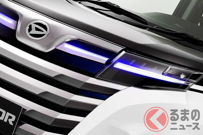 ダイハツのデザイン担当者は当時、ファミリー向けのトールに迫力を与えて若い層にも届くように狙ったと説明しており、そのために大型グリルや2トーンカラー、青いLEDラインの連続演出などで“少しやんちゃ”な雰囲気を作り込んだといいます。