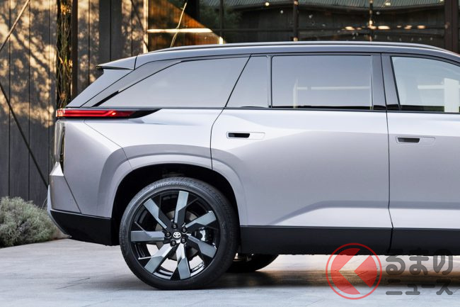 トヨタが「新型“3列・7人乗り”SUV」世界初公開! 全長5m級「ラージボディ」×精悍「カクカクデザイン」の超“静音”モデル! 新型「ハイランダーBEV」日本導入に期待大!