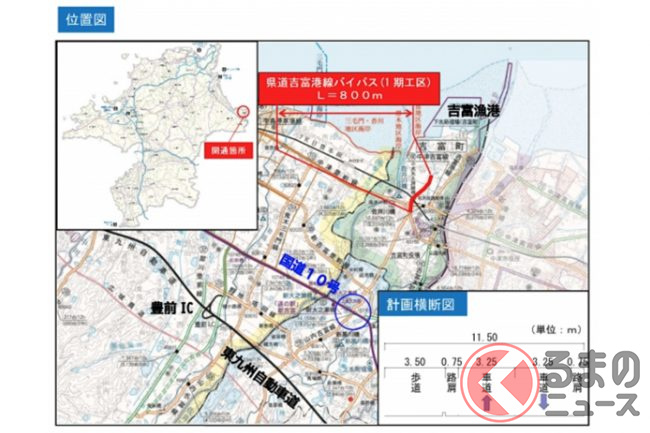 漁港まで快走な「新バイパス」誕生! 国道10号から海へのアクセス向上、福岡・吉富町「県道吉富港線バイパス(1期工区)」 3月10日開通へ