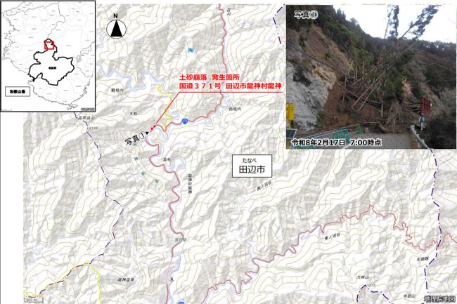 和歌山県田辺市は2026年2月16日、公式SNSで、市内の国道371号が通行止めになっていると発表しました。