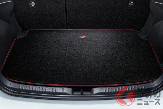 ピアノブラック塗装のナンバーフレーム(6600円)やラゲージマット(1万3200円)には、GRロゴがあしらわれています。
