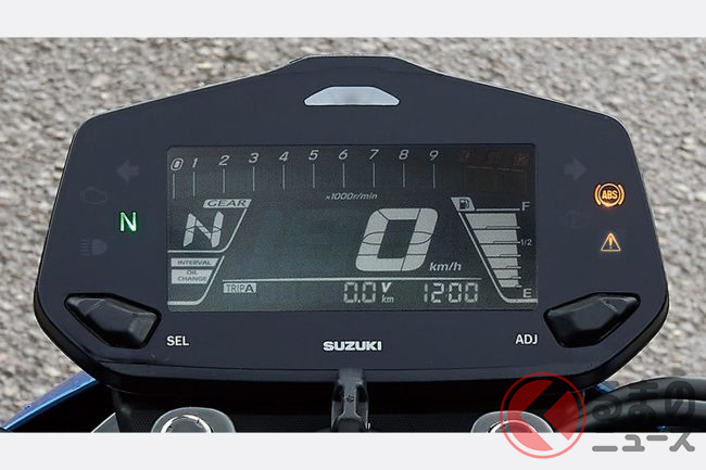 装備面も充実しており、視認性に優れたフルデジタル表示の液晶多機能メーターが採用されています。このメーターには、任意に設定した回転数でシフトチェンジのタイミングを知らせるRPMインジケーターや、ギアポジションインジケーター、オイル交換時期を知らせるオイルチェンジインジケーターなどが備わります。