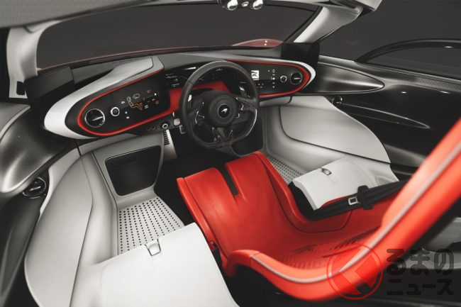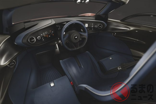 ドライバーを車体の中心に置くことで、まるでフォーミュラカーのような完璧なドライビングポジションと視界を実現しており、マクラーレンの「ドライバーファースト」の哲学が極限まで体現されています。