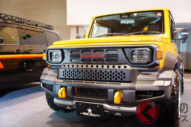 スズキの「ハイラックス」公開!? カクカクデザインの「チャンプ」仕様! 顔面整形で激変の「ジムニーシエラ/ノマド CH:AMP」登場