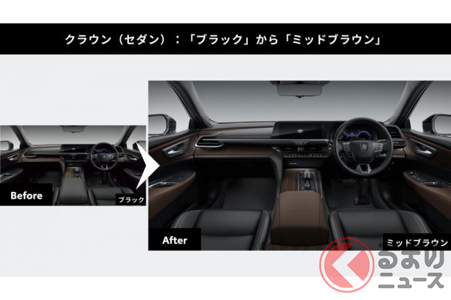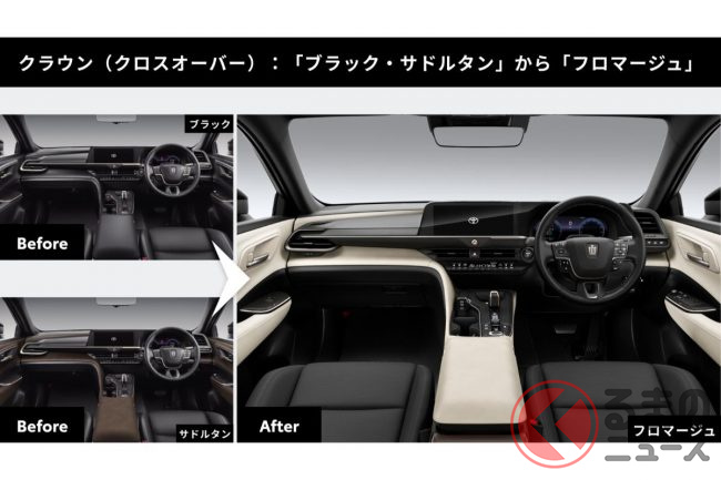 これにより、クラウン全4車種で新車購入時とは異なる内装色への「アップグレード」が可能になります。