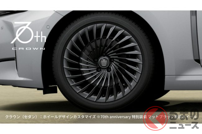 クラウン(クロスオーバー)の「CROSSOVER RS」、クラウン(スポーツ)の「SPORT RS」、クラウン(エステート)の「ESTATE RS」といった上位グレードのデザインに加え、クラウン(セダン)では「70th anniversary 特別装備 マットブラック塗装ホイール」への換装も71年目にちなんだ新価格にて設定されます。