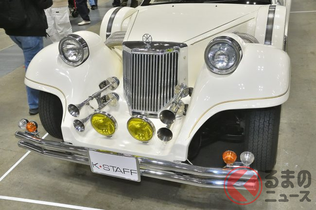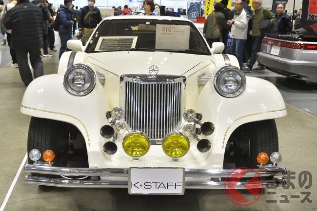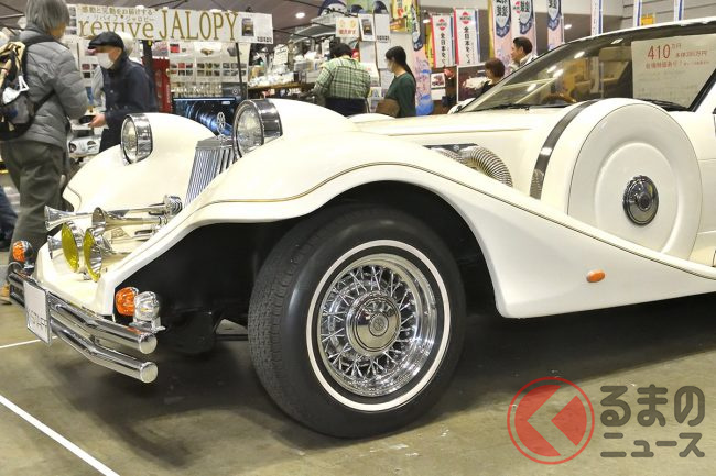 ところが今回は、同社ブースに長い車体が特徴のクラシックカーレプリカが登場し、注目を集めました。