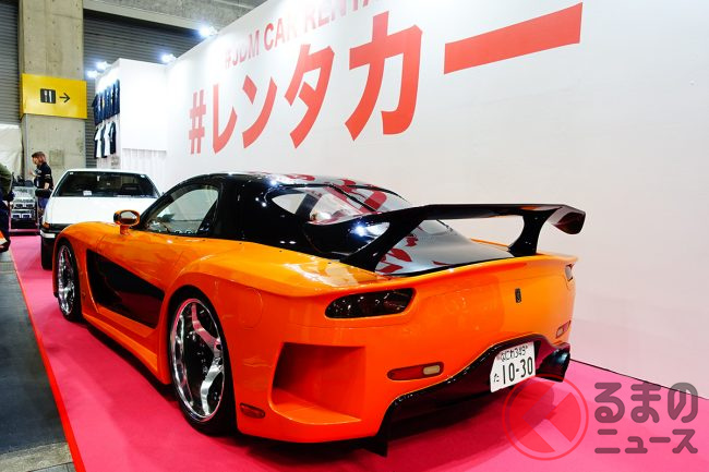 大阪オートメッセといえば、「東京オートサロン」と並ぶカスタムカーの祭典です。出展メーカーは、個性あふれるカスタムカーを披露する中、このブースではなんと、レンタカーを展示していたのです。