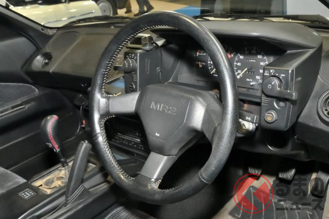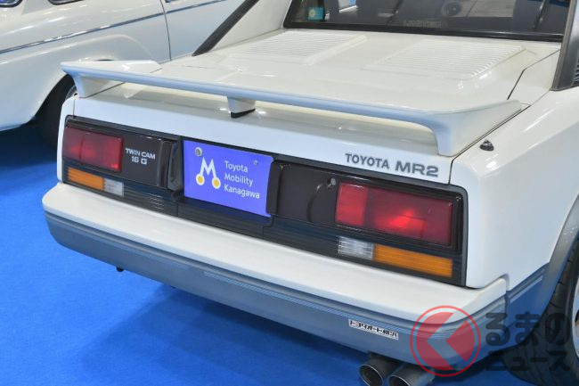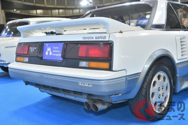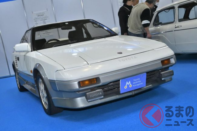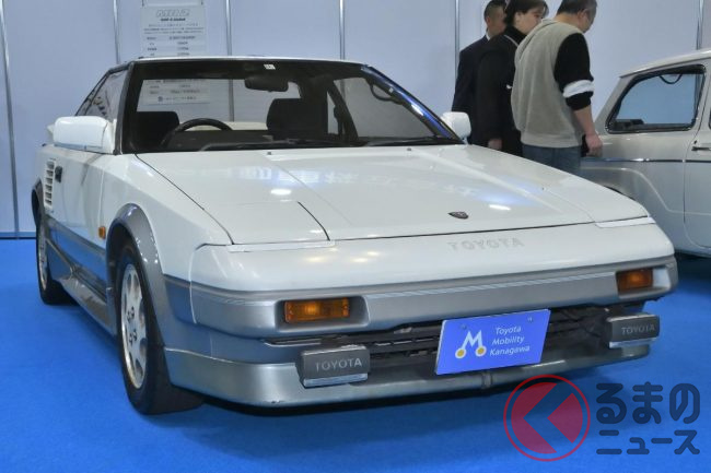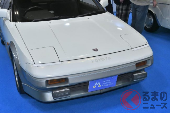 トヨタ初「ミッドシップスポーツカー」登場! “2ドアクーペ”×往年の「リトラクタブルヘッドライト」が懐かしい! 開放感あるルーフも魅力! “1.6リッタースーパーチャージャー”搭載の「初代MR2」実車展示!