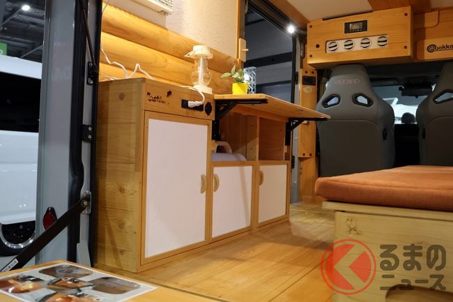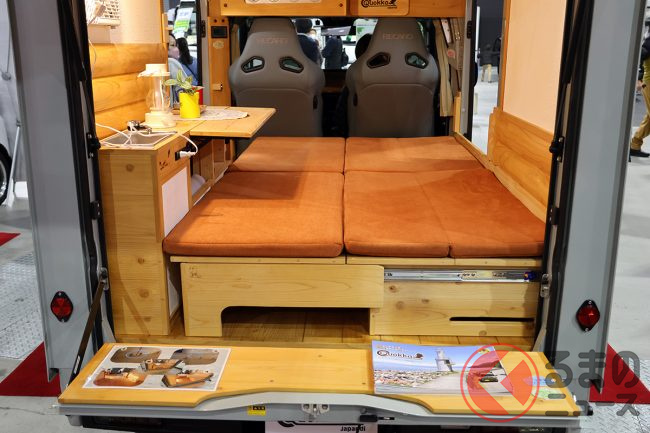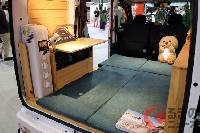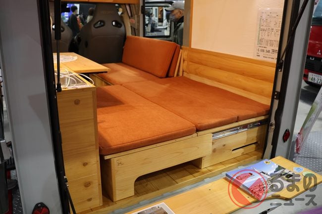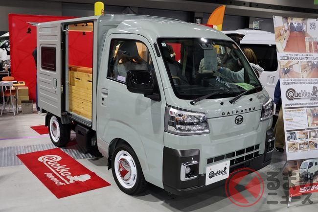 ダイハツ「高級“ウッド”内装」の軽商用車に驚愕! 全長3.4m「ミニミニサイズ」に「国産ひのき」全面採用の贅沢“車中泊”仕様! 断熱も効いてるミシマダイハツの「ハイゼット」軽キャンパー「クオッカ ライク/ジャパンディ」どんなクルマ?