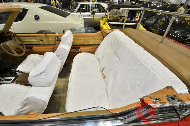 内装は、前後シートに白いカバーがかけられており、いかにもパレードカーという雰囲気が漂っています。