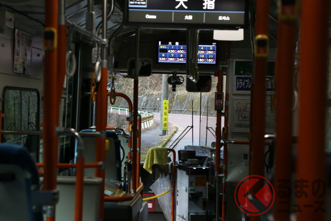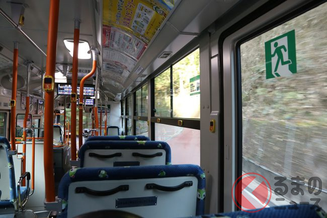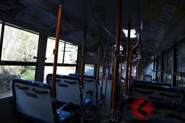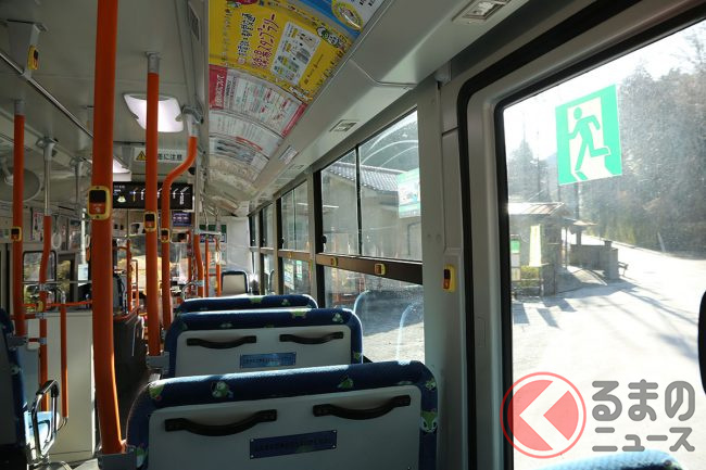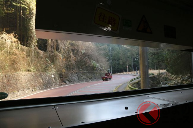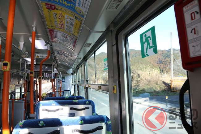 7時47分定刻に出発した時点で、乗客は結局筆者(くるまのニュース編集部員N)ひとりだけでした。ちなみにこの路線は1日4本のみ。これを逃すと次は10時39分です。