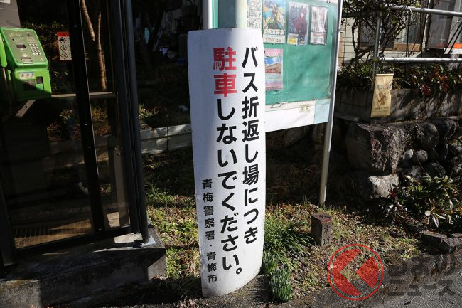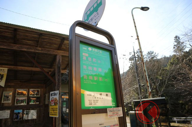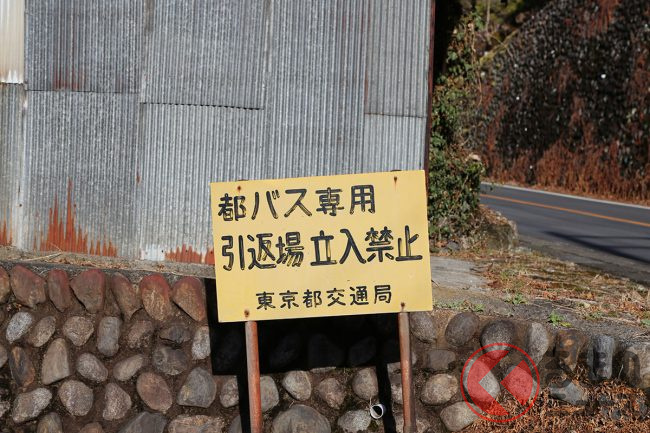 どういう意味かわからないと思いますが、まず交差点で左ルートに進み、都道193号線を進んでバス停を2つ通過したあと、「北小曽木」バス停でUターンするのです。