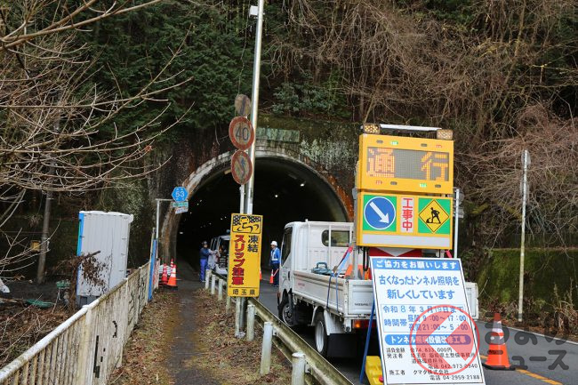 そして「黒沢」バス停をすぎると、トンネルに突入します。都営バスが郊外のトンネルに入っていくのは、やはり違和感しかありません。ここは「新吹上トンネル」で、吹上峠を通過します。旧トンネルも隣にあるようで、心霊スポットとして有名なんだとか。