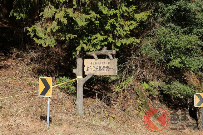 「落石注意」の看板もあり、低速ギア固定でエアロスターの力強いエンジンが響き渡ります。山道を走っていることを実感しました。
