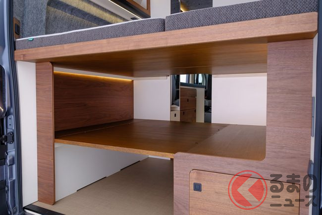 ダヴィンチは「贅沢な大人2名の旅時間」がテーマの贅沢なキャンピングカーですが、「オーナーの孫や子ども、愛犬なども乗せたい」という要望を受け、常設ベッドの下に幅1350mm・長さ1770mmのベッドの追加が可能となりました。