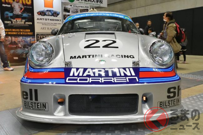 「ノスタルジック2デイズ2026」には、かつての名車を再現したいわゆるレプリカモデルも多数見られました。アートレーシングが展示したポルシェのレーシングカーレプリカもそのひとつ。しかも作ったのは学生で、さらにベースはあのクルマでした。