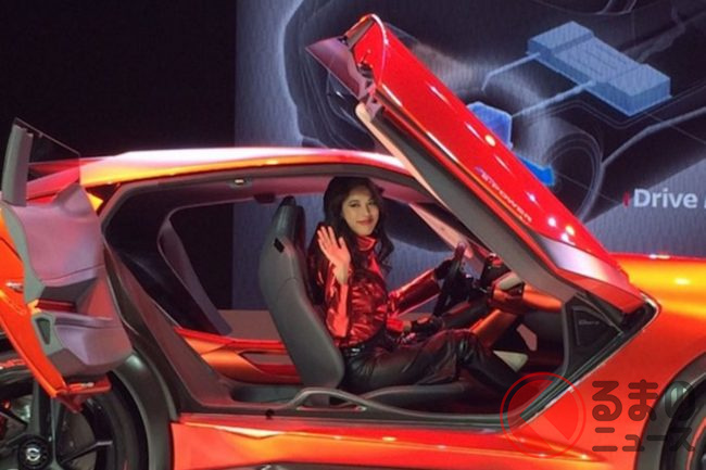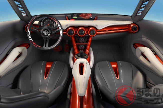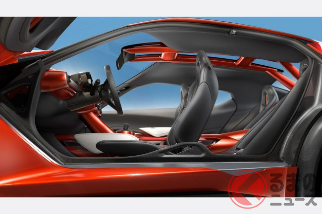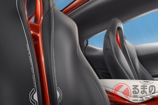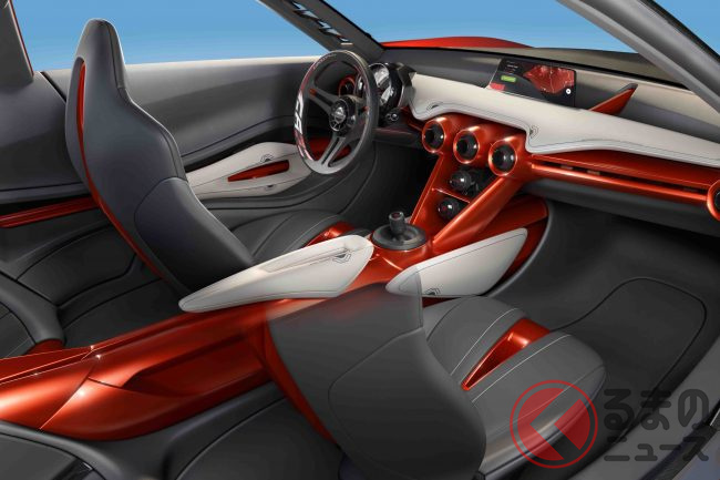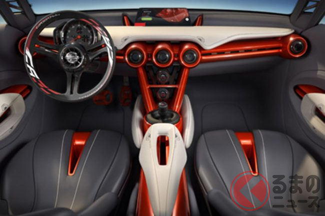 インテリアはロードバイクの世界観を反映し、サドルを思わせる穴開き形状のシートやスリムなセンターコンソールを採用。スポーツカーの“ワクワク感”を狙った、個性的な空間として提案されていました。