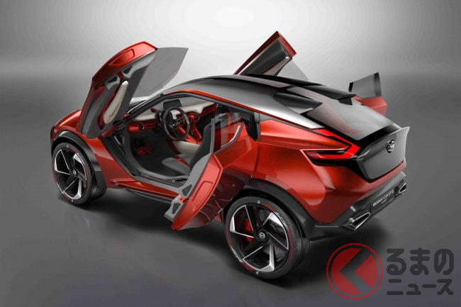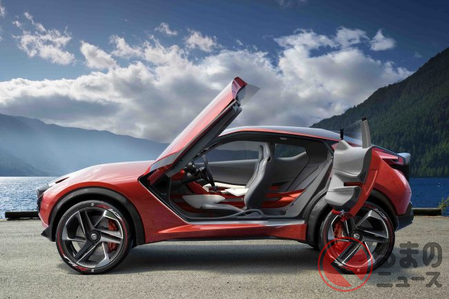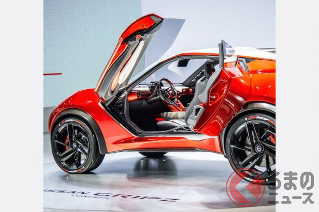 全長4.1mボディに「ガルウィング&後ろヒンジハーフドア」採用! 日産の「フェアレディZ風SUV」の魅力に再注目!伝説の「240Z」彷彿させる2015年公開の「グリップス」とは