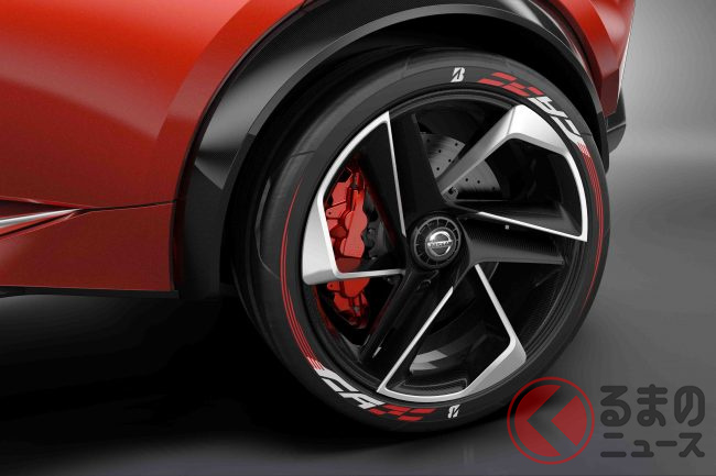フロントには現在の日産車の顔となっている大型の「Vモーショングリル」を備え、鋭い「ブーメラン型ランプ」を採用。足元には3スポーク形状の22インチホイールを装着し、コンパクトなボディに対して強い踏ん張り感を与えていました。