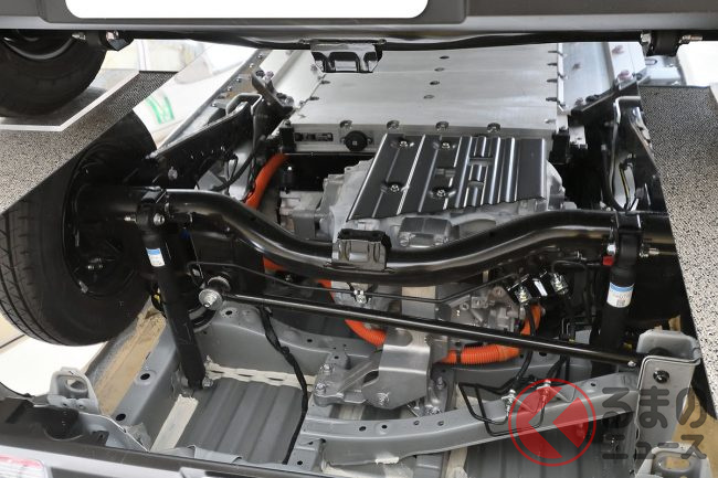 搭載されているBEVシステム e-SMART ELECTRICは、トヨタ・スズキ・ダイハツの3社共同開発の中で作られたもので、バッテリーのほかに電力供給ユニットと、インバータやモーター、減速機などを一体化したeアクスルなどから構成されています。