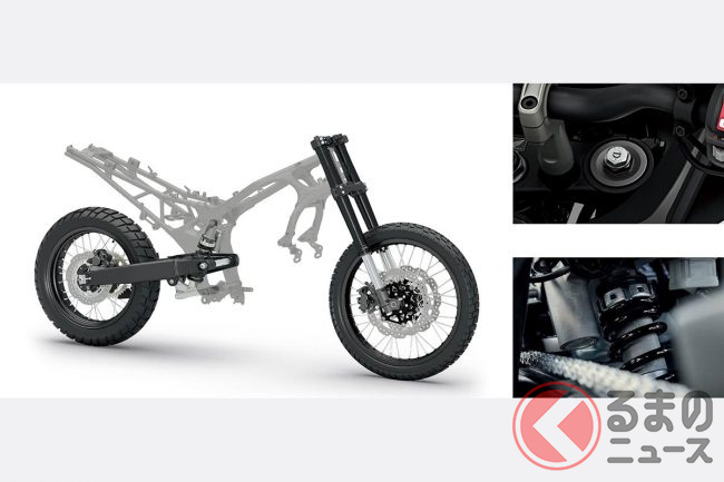 車体には軽量高剛性のスチール製ダイヤモンドフレームを採用。足回りには、フロントにショーワ(Astemo)製のSFF-CA倒立フロントフォーク、リアにはプロリンクサスペンションとアルミハイブリッドスイングアームが組み合わされ、様々な路面での乗り心地と軽快な操縦性を追求しました。