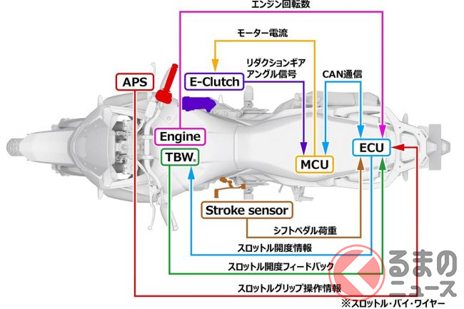 この新型モデルで最も注目すべき点は、スロットルバイワイヤ採用モデルとして初めて搭載された新開発の電子制御技術「Honda E-Clutch」です。
