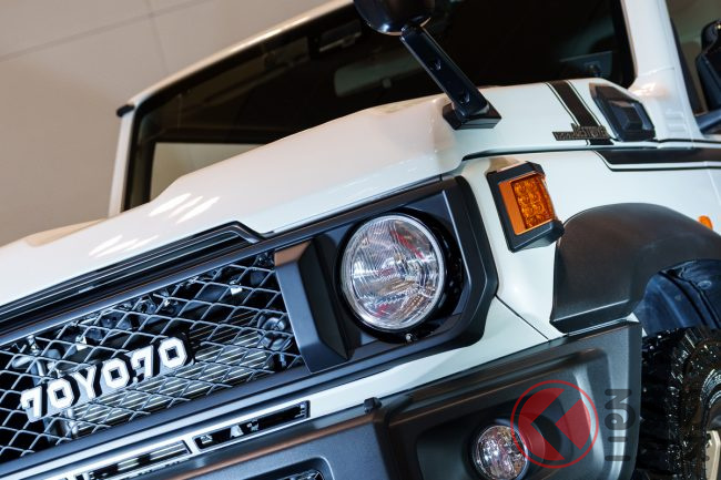 ボディキットは丸型ヘッドライトや特徴的なフロントグリル、コーナーマーカーといった70らしさを演出するものはもちろん、特徴的な形状を持つボンネットを再現したボンネットカバーやリアクォーターに備わるベンチレーションダクトやアドブルー注入口カバー(これらはダミー)、リアビューも70らしく仕立ててくれるコーナーカバーなどが含まれ、大きくイメージチェンジができるものとなっています。