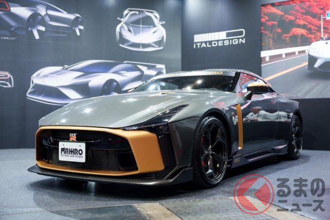 日産「斬新“GT-R”」登場! ながーーくてワイドな「専用デザイン」&“NISMO超え”の「721馬力」パワトレ採用! “約1億8000万円”の価値あり! 50周年を記念した「GT-R50 by イタルデザイン」実車展示!